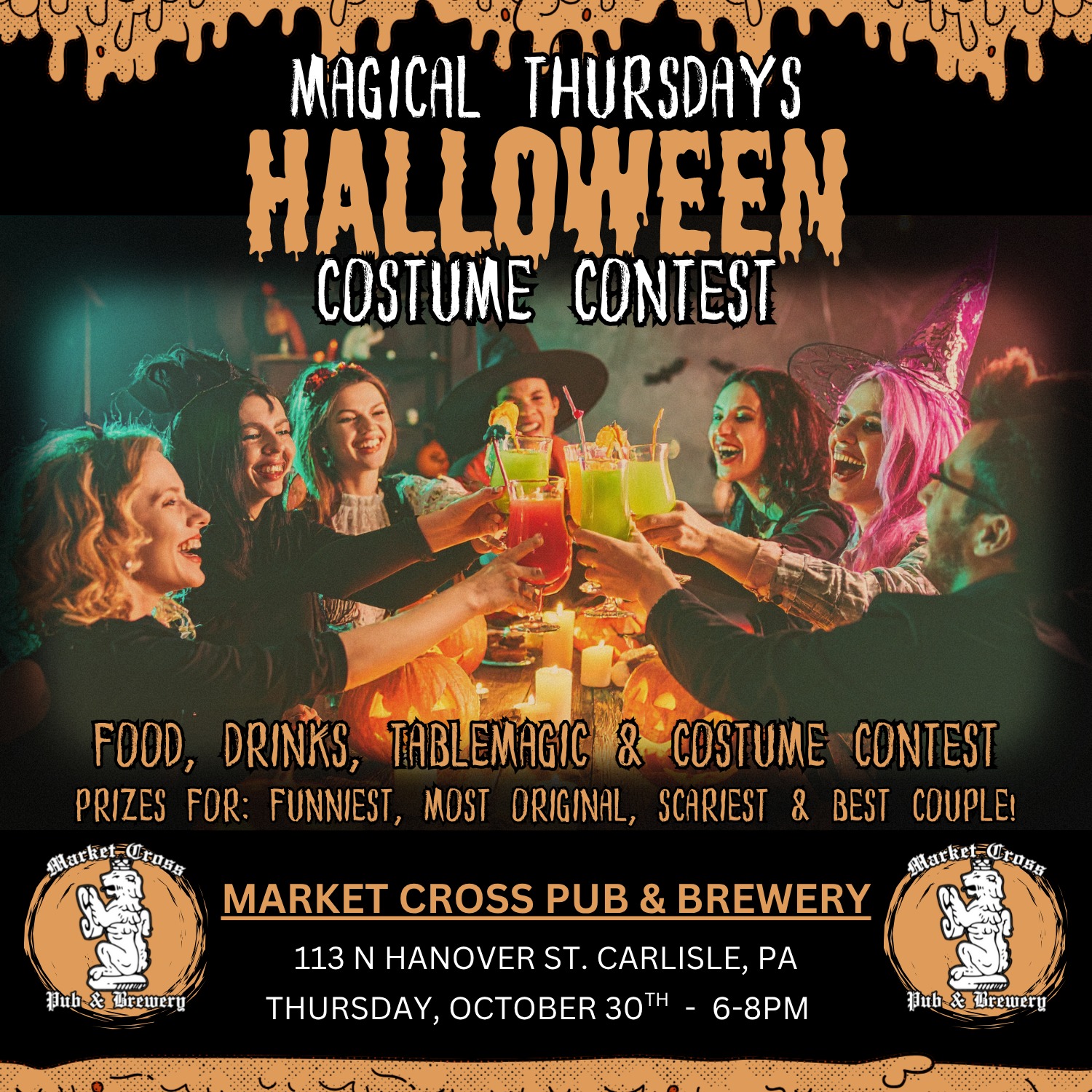 Get your best costume ready and join us for our Magical Thursdays Halloween Costume Contest happening on Thursday, October 30th from 6-8pm! Not only will we be having magician Kyle Purnell roaming around the pub performing table magic that will blow your mind but we will be awarding Market Cross gift cards to the Funniest,...